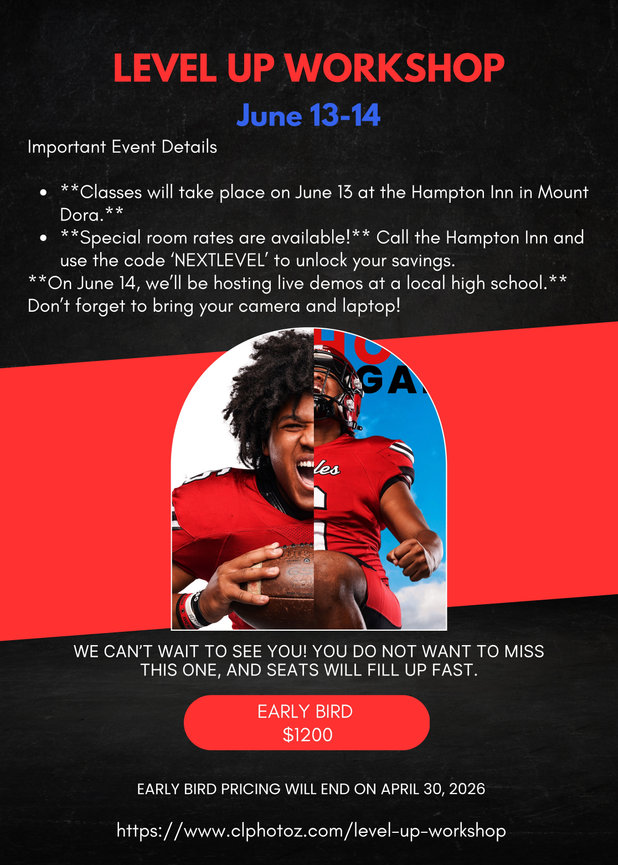 CL PHOTOZ will demonstrate how we've transformed our sports photography business into a six-figure venture. Get ready for insights on workflow, shooting techniques, lighting setups, live demonstrations, and so much more.